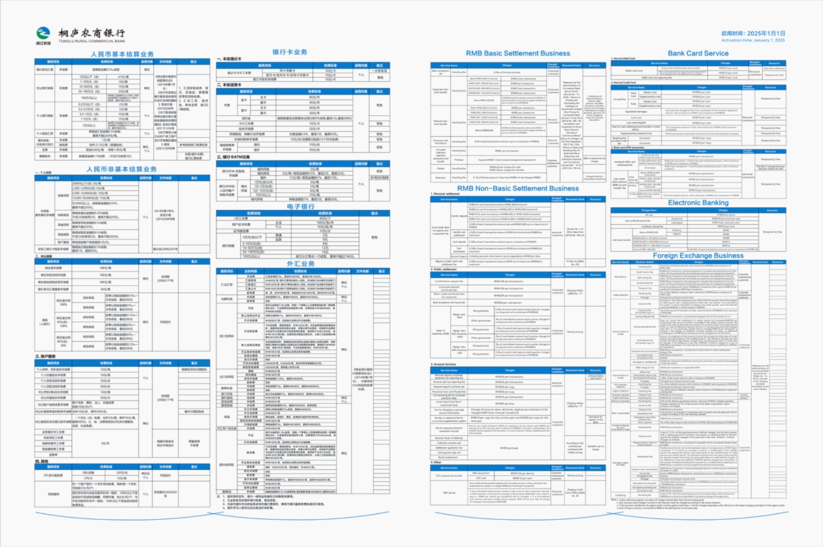 金融服务资费免费项目表