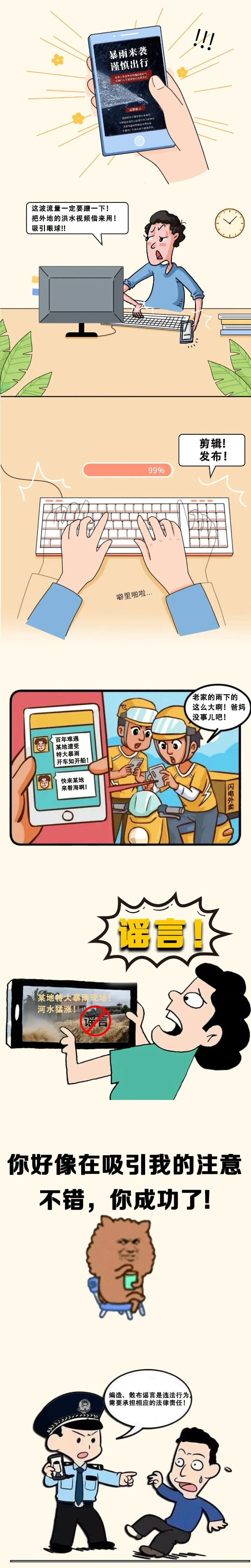 当前进入“七下八上”的主汛期,暴雨、洪涝灾害、极端天气时有发生。在全民关注汛情灾情、积极投身防汛救灾工作之际,却有个别人散布关于汛情灾情的网络谣言,趁机博取关注。