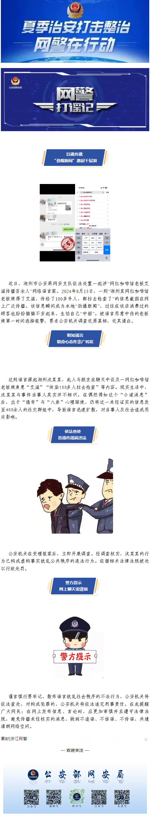 公安机关查处网络谣言 |咖啡馆老板娘艾滋传染百人? 警方:网络传谣属非法 已依法查处!