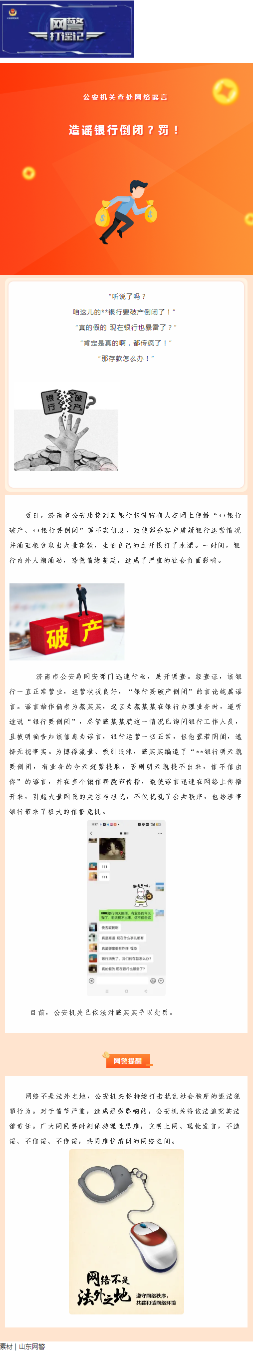 公安机关查处网络谣言|造谣银行倒闭?罚!