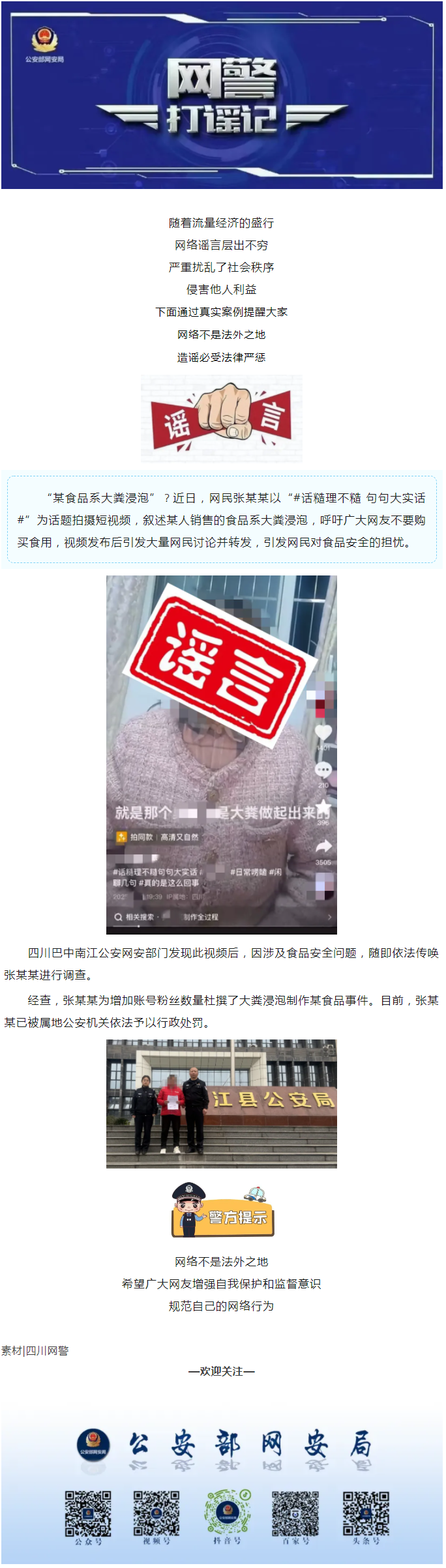 网警打谣 | 为博眼球 编造涉食品安全网络谣言,依法查处!