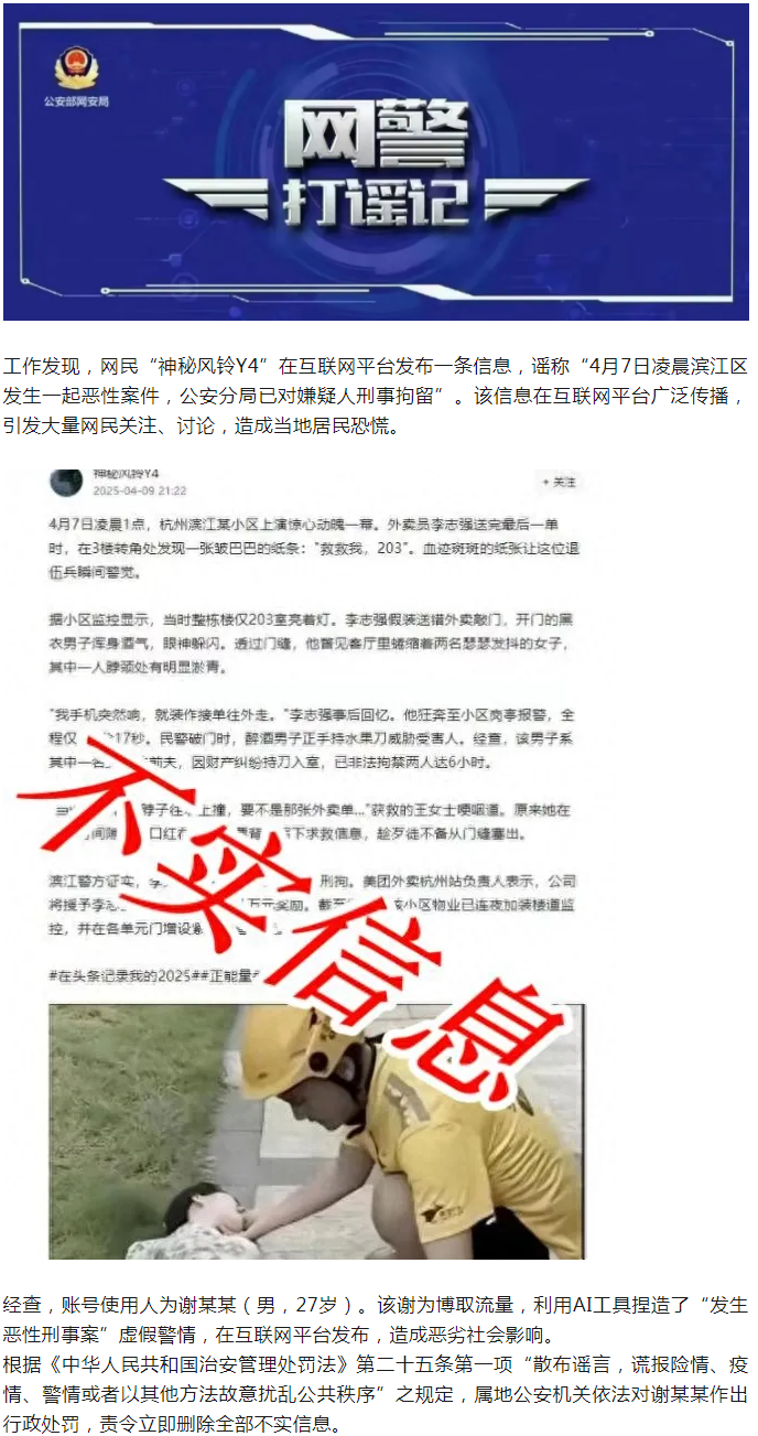利用AI工具捏造“发生恶性刑事案”虚假警情,嫌疑人谢某某被依法处理