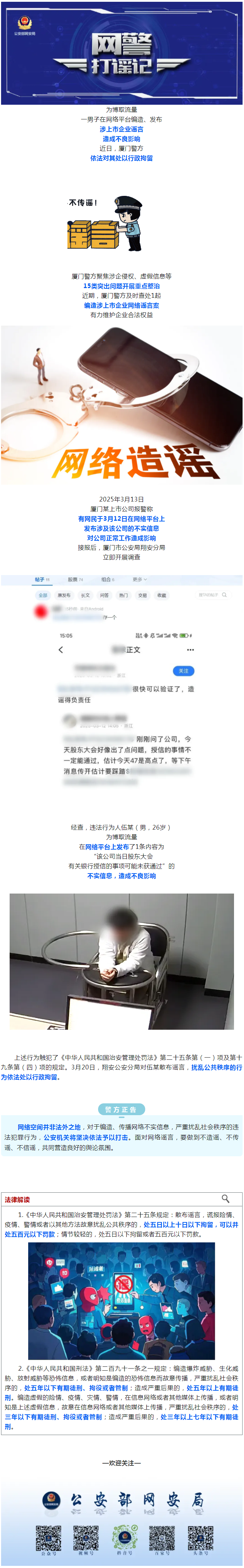 一网民编造涉厦门某上市企业网络谣言,被行政拘留