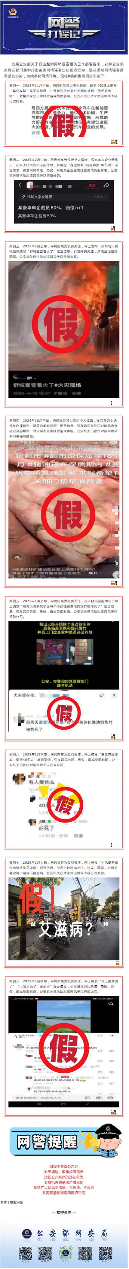 安徽网警公布8起打击整治网络谣言典型案件