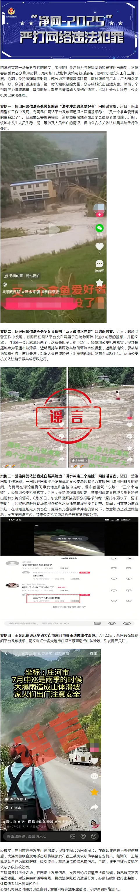 防汛抗灾不容谣言添乱,4起涉汛网络谣言案被查处