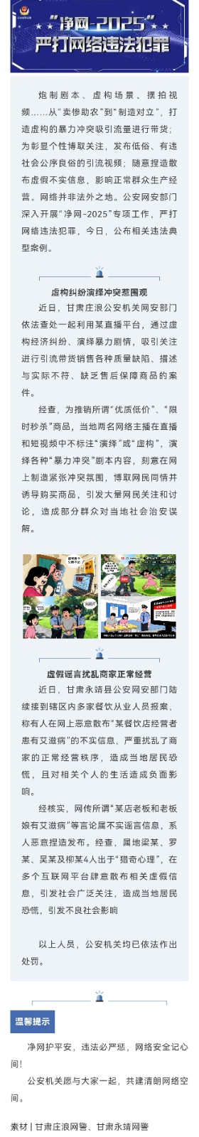 净网—2025|虚假摆拍演绎暴力,捏造谣言造成恐慌...网警公布打击网络谣言典型案例