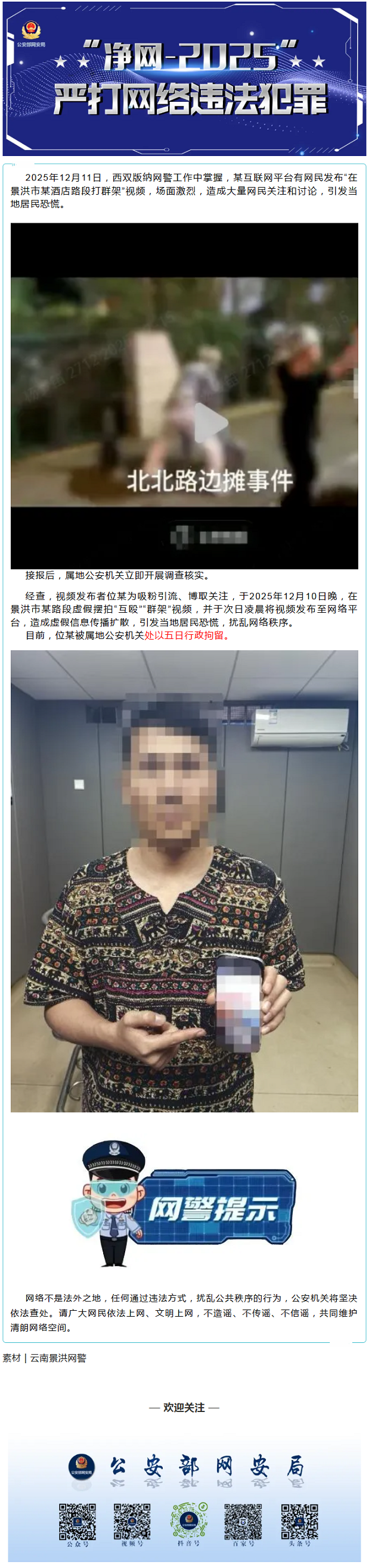 净网—2025丨为“涨粉”摆拍“打群架”?网警依法查处!