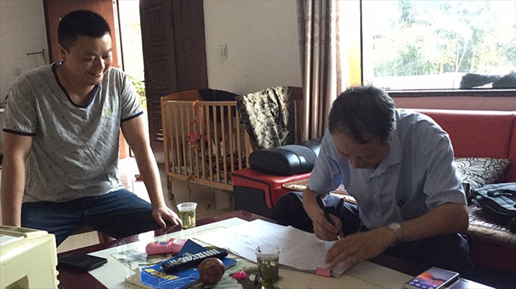 在瑶琳的任何一个村随便找一个农户打听郑红,几乎没有不知道他的。在瑶琳支行14年,郑叔几乎跑遍了辖内所有的村村落落和山道田垄。他目前手头有贷款余额的669户农户,除了个别幸福养老贷客户,他可以毫不犹豫地说出家庭信息,如数家珍,甚至大部分连手机号码都能马上报出来。也正因为熟悉到这种程度,辖内农户的红白喜事,郑叔每年要参加不下30场,多数时候,他还是榜上有名的后勤人员。用他的话说,“作为一名信贷人员,你可以清高,但不能不接地气。与百姓混熟了,信息也就灵了,哪怕有风险,也能在第一时间处置。”