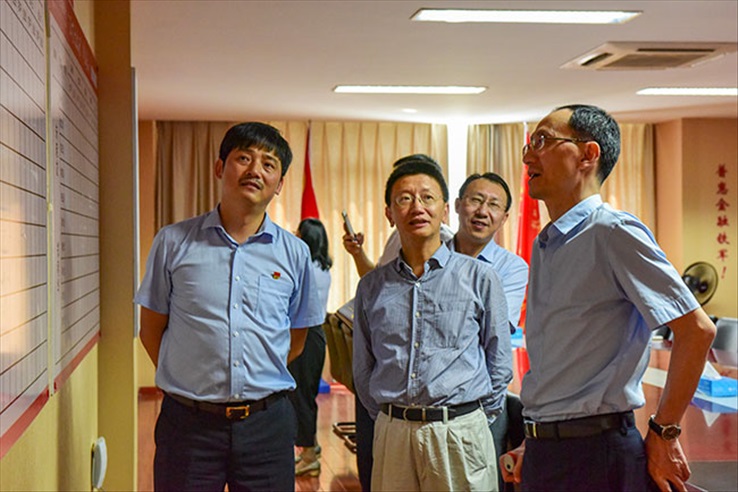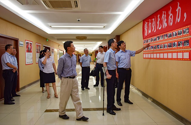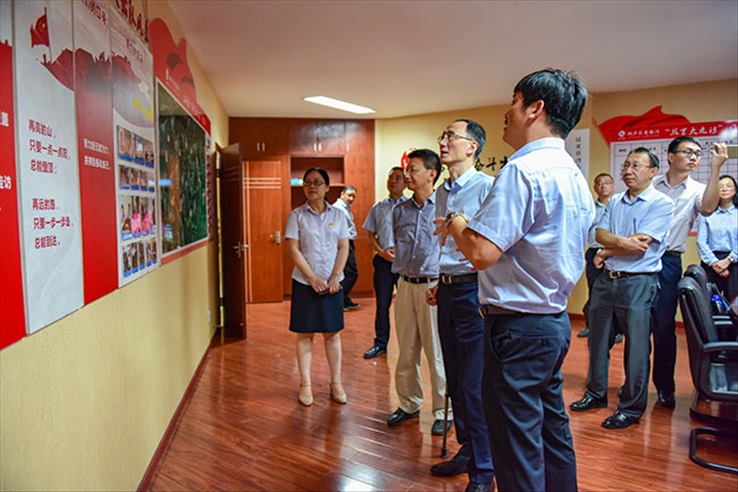 7月25日,省农信联社党委副书记潘天灵到我行调研党建工作开展情况,实地考察我行江南支行“双百”行动指挥部,并与我行班子成员及相关部室负责人进行了座谈。省农信联社党群工作处处长陈俊杰、杭州办事处主任杨中萱陪同调研。