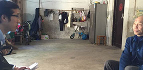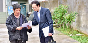 向即将拆迁的老爷爷宣传我行金融政策和幸福养老贷产品。